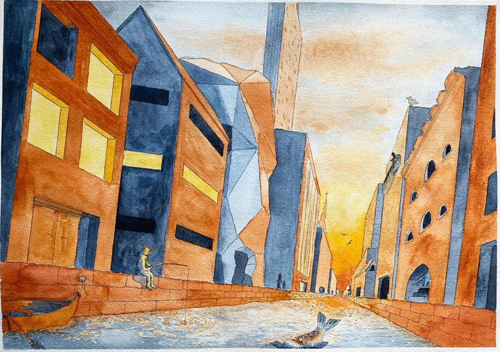 Moni taiteilija huomaa ajan myötä käyttävänsä toistuvasti samoja värejä. Ne tuntuvat “omilta” ja heijastavat omaa tapaa kokea maailmaa. Kun värit valitsee tietoisesti, ne alkavat kertoa tarinaa, joka jatkuu teoksesta toiseen. Itse huomaan palaavani usein samaan vastaväripariin: oranssi ja sininen. Oranssi on täydellinen lämpimiin valoihin, kun taas sininen tuo kylmiin varjoihin juuri oikean rauhan. Niiden välinen kontrasti tekee teoksesta elävän ja tasapainoisen yhtä aikaa.